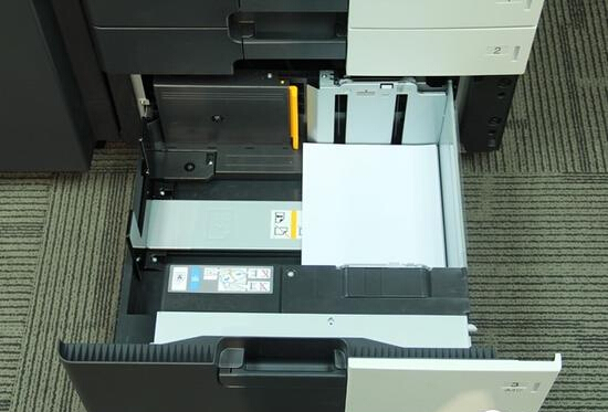 柯尼卡美能達C658標配2個500頁紙盒和手送紙盤,選配更支持側(cè)置的大容量紙柜,最高紙張容量達到6650頁。充足的紙張容量,確保高速輸出的連續(xù)性。